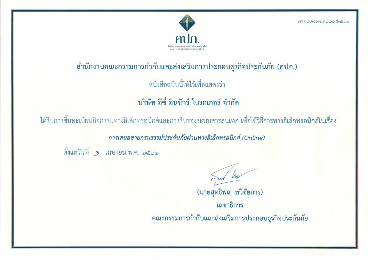 ใบอนุญาตการเสนอขายกรมธรรม์ประกันภัยผ่านทางอิเล็กทรอนิกส์ (Online)