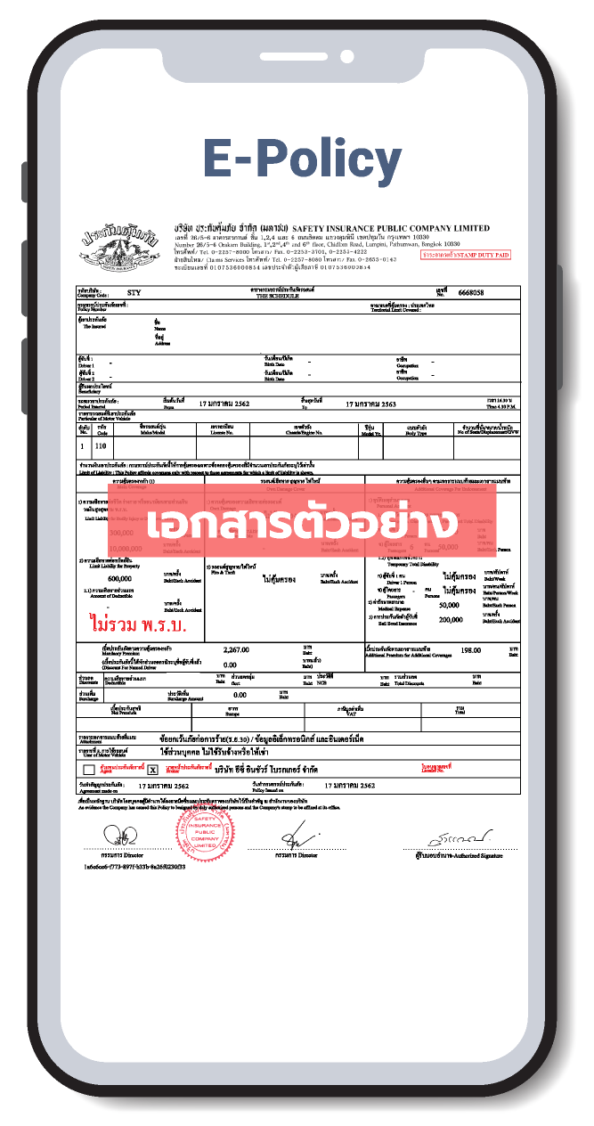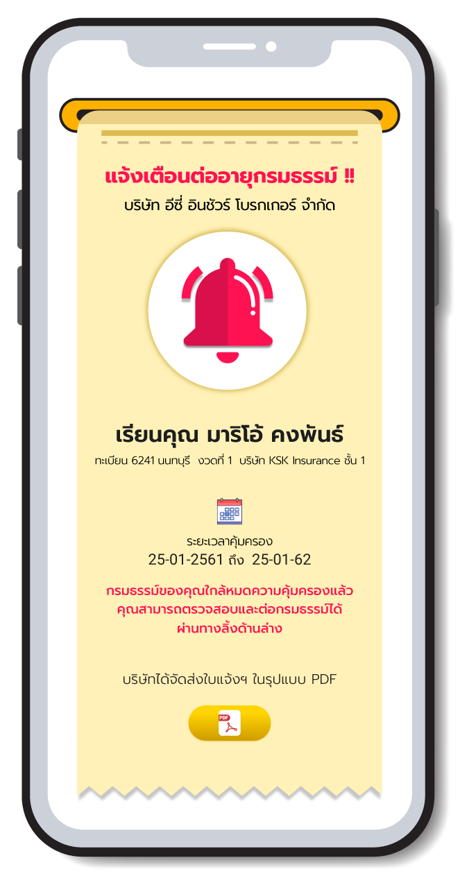 ตรวจสอบกรมธรรม์ รายละเอียดความคุ้มครอง เตือนต่ออายุกรมธรรม์และวันครบกำหนดชำระ ซึ่งมีรูปแบบเหมือนกับเอกสารแจ้งทางไปรษณีย์